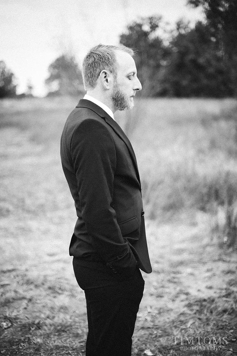 Ada and Adam got married on Mulberry Mountain in Northwest Arkansas. I can’t think of a more perfect setting than the mountains of Northwest Arkansas for this sweet couple to get married. An intimate ceremony overlooking the valleys below, full of all the fall colors, with one of our very favorite couples just sets our hearts on fire. You can really see the time and effort put into the details of this wedding. Absolutely everything was done with a thoughtful touch from the golden dinosaurs to the bride’s stunning bouquet. Ada’s wedding dress is one of the absolute coolest dresses we have ever seen, with beautiful blues, greens, orange & red flowing up from the bottom, and the look on Adam’s face when he sees her for the first time, coming down the aisle, being led by one of their beloved pups, is absolutely priceless. These two are a perfect fit for each other, and you can see it in the love and emotion they shared on this day. It really comes through in their portraits.
